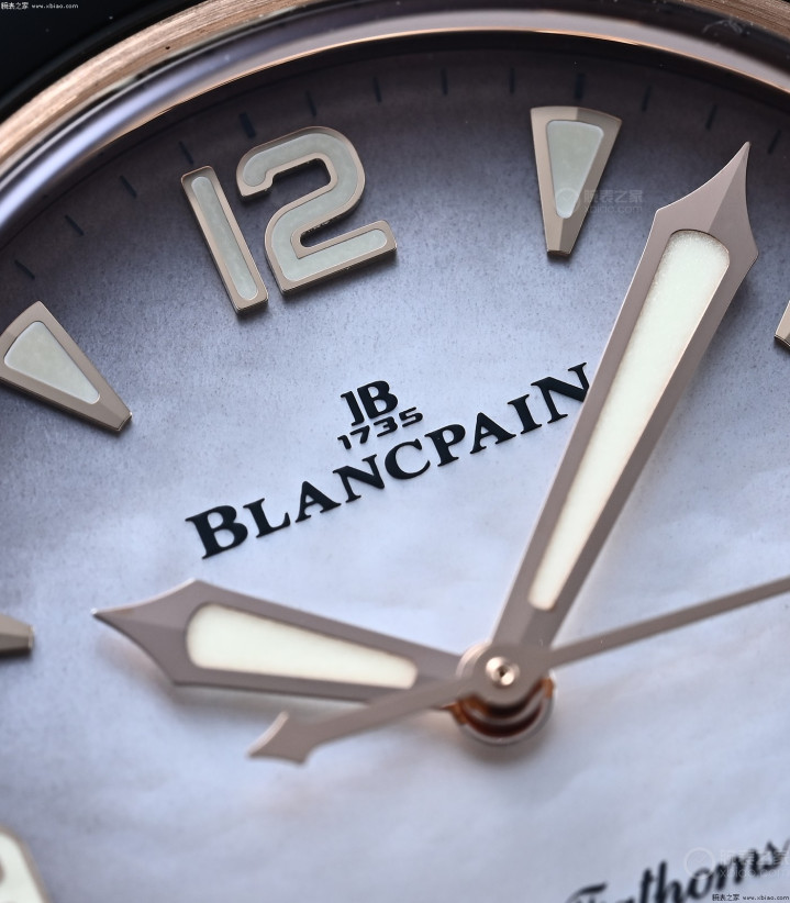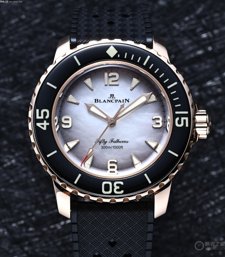 今年,宝珀在经典版50噚中,推出了全新的38毫米版本,型号5007。38毫米,是一个中性尺寸,宝珀专门推出了两个女款,“黑珍珠”和“粉珍珠”。为什么叫“珍珠”?因为两只表,都是珍珠母贝盘面。女生上手,不但大小合适,而且又奢又时尚。