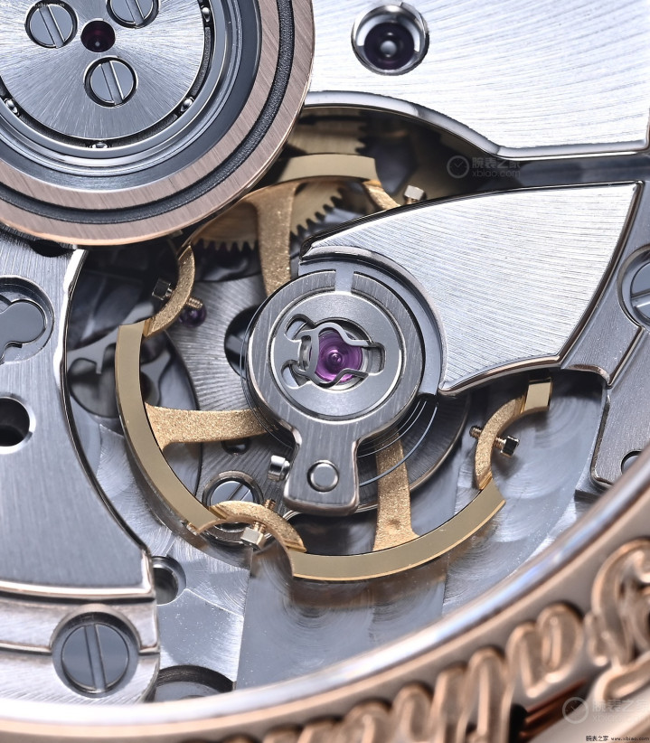 在机芯细节上,我们可以看到,就连外露的齿轮片,也都是有拉丝装饰并做了倒角,机芯的打磨装饰是从内到外,没有遗漏的。这是什么级别?在主流名表的量产表当中,宝珀、江诗丹顿、爱彼都是这个级别。